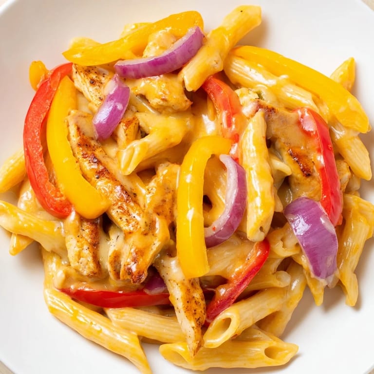 Pin it My roommate stumbled home from work looking completely defeated, and I happened to have chicken, peppers, and pasta sitting on the counter. I threw everything into one pan with whatever spices I could grab from the cabinet. She took one bite and demanded I write down what I did.